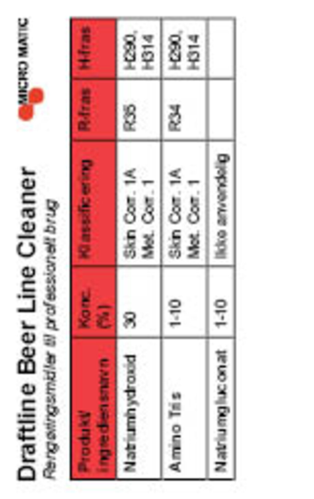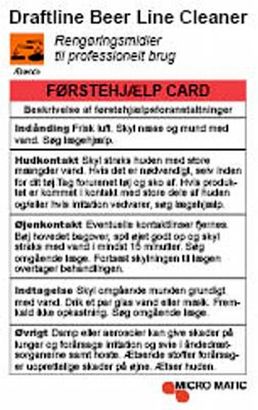 First help card -Draftbeer cleaner, DK