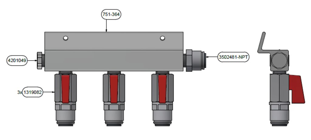 Manifold -3 lines, Co2, JG 3/8″