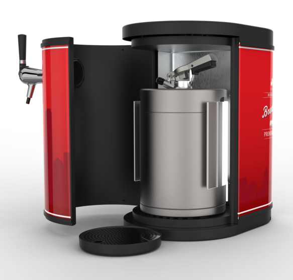 Praktyczna i inteligentna obudowa mieści 10-litrową beczkę świeżego piwa, a także posiada funkcję chłodzenia oraz wewnętrzne zasilanie CO2. Urządzenie ma wymiary około 60 cm x 35 cm (Gł. x Szer.) i wystarczy podłączyć je do standardowego gniazdka elektrycznego.