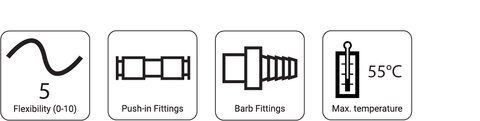 - Available with UV protection for outdoor applications, primarily as a dispense gas line